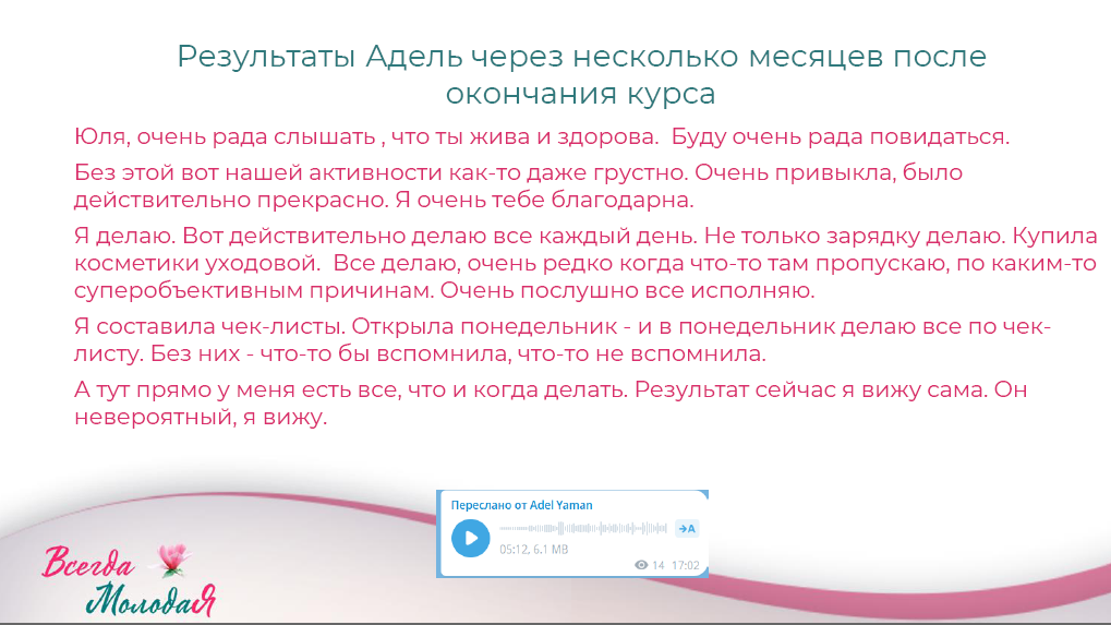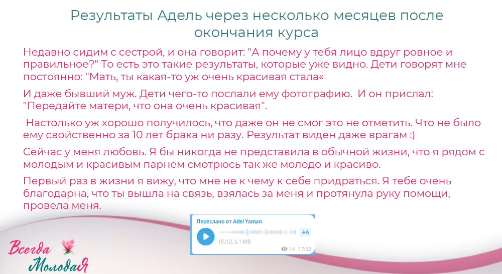 Для тех, кто проходил программу "Молодое лицо и здоровое тело" действует дополнительная скидка (пишите в поддержку)